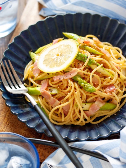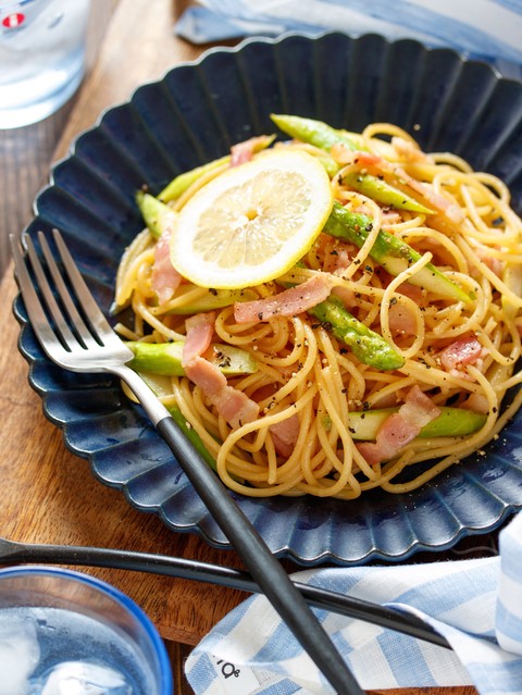 《アスパラベーコンのレモンバター醤油パスタ》
