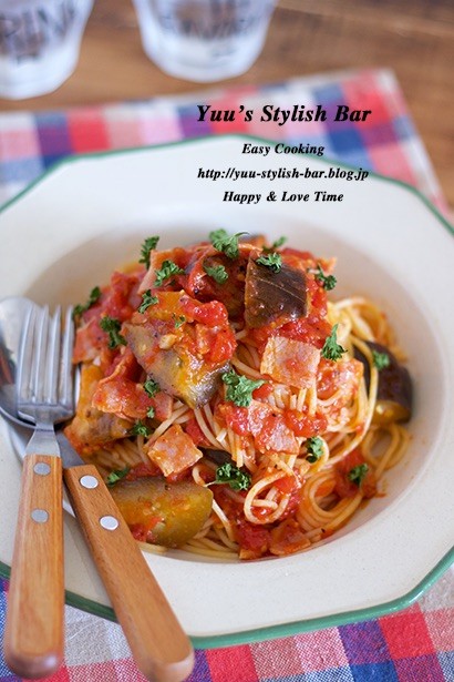 『秋ナスとベーコンのウマ旨♡トマトパスタ』
