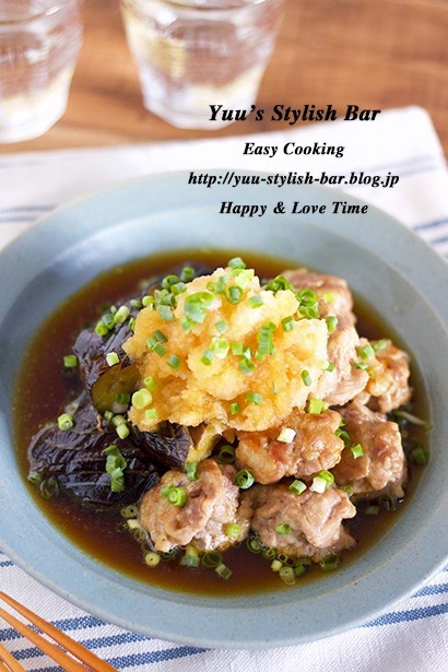『豚コマ団子と秋ナスのおろしダレ』