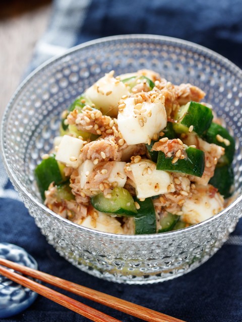 《長いもときゅうりの梅ツナサラダ》