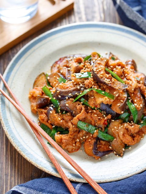 《豚バラなすのスタミナ♡プルコギ炒め》