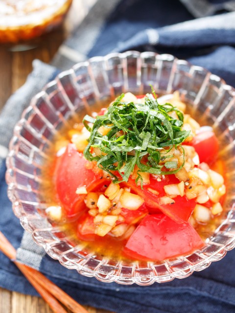 乱切りにしたトマトを冷蔵庫でキンキンに冷やし、玉ねぎたっぷりのドレッシングをかけました♪もうこれを食べるだけで、身体中の細胞が蘇る感じ。笑玉ねぎのシャキッとした食感もいいアクセントになり、ボウルごと抱えて食べる勢い。また、ちょっぴり甘酸っぱいドレッシングが、酸味のあるトマトと好相性!!はずれトマトさえも美味しく食べれてしまうから不思議♪