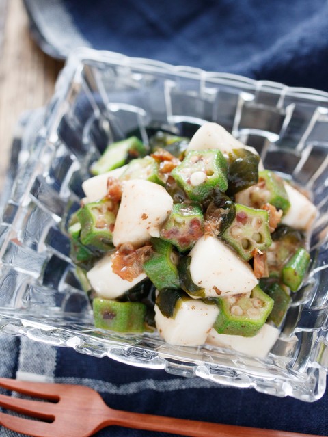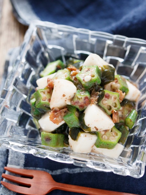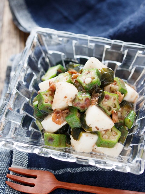 《長いもとオクラの梅ポンおかか和え》