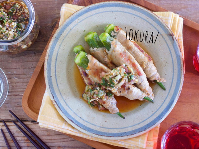『オクラの豚肉巻き〜香味ポン酢だれ〜』