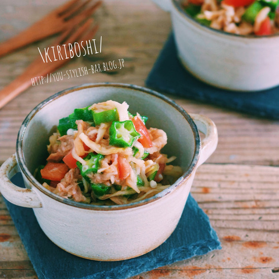『切り干し大根とオクラとトマトのゆずツナポン』
