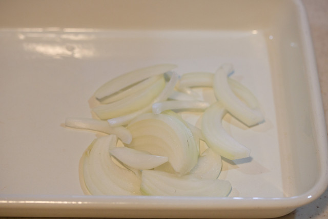 ポリ袋に豚肉と玉ねぎを入れて甘辛ダレを揉み込み