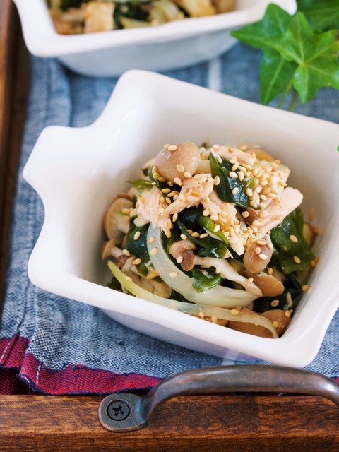 『しめじとわかめのツナポン和え』