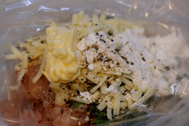 チーズ・青じそ・調味料と共にポリ袋に入れ