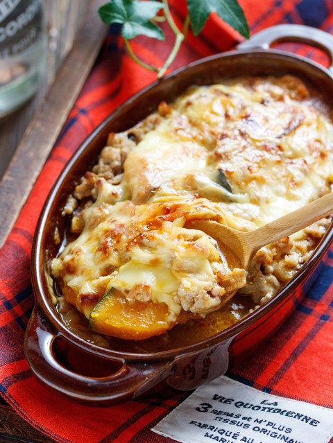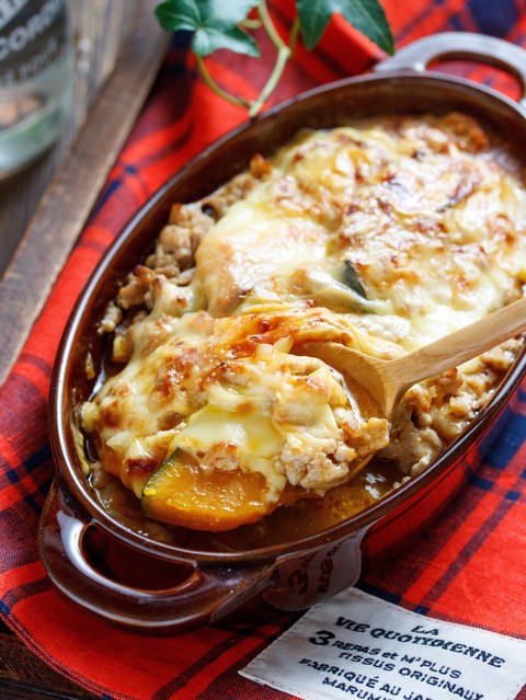 《かぼちゃの肉味噌チーズグラタン》