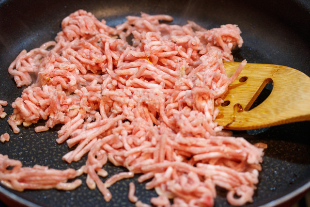普通肉味噌は、ひき肉を炒めて