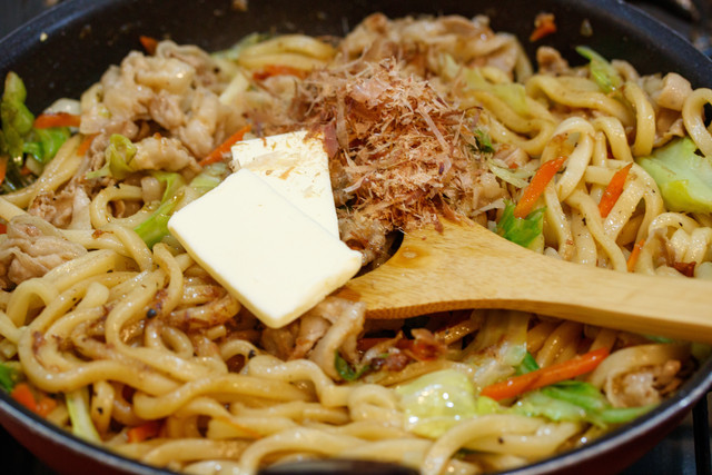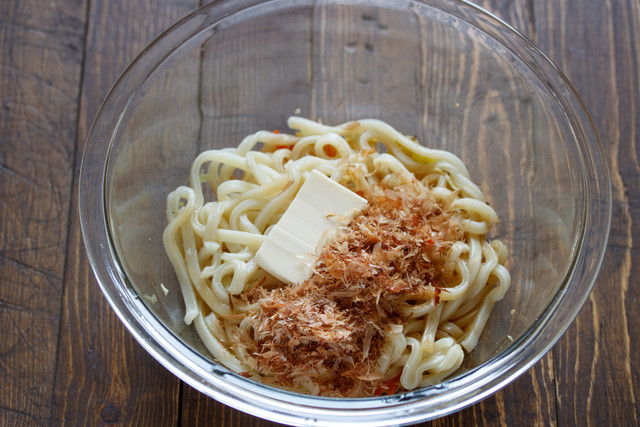 《豚肉とキャベツのおかかバター醤油うどん》