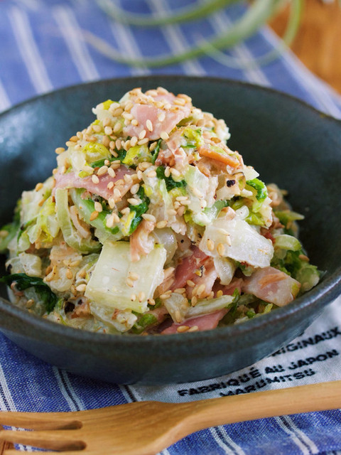 『ごまマヨおかか de 白菜とベーコンの無限サラダ』