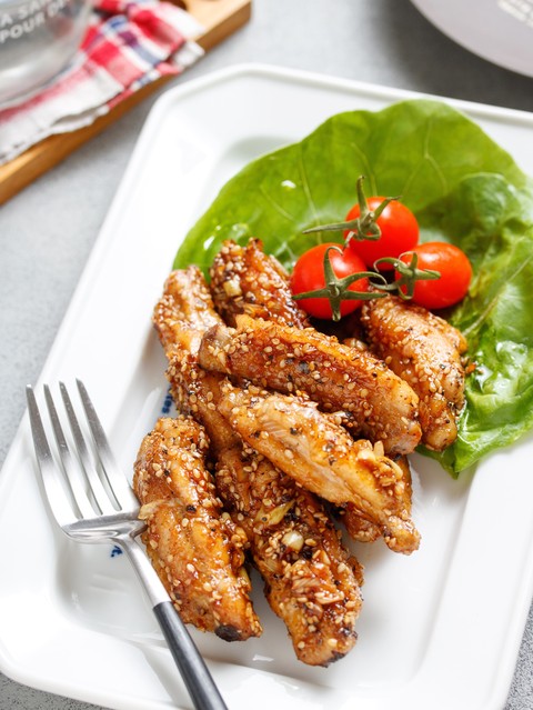 鶏手羽中に下味と片栗粉をまぶしてフライパンで焼き