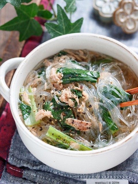 小松菜とツナの中華風春雨スープ