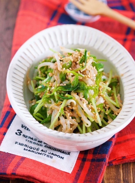 『豆苗ともやしのツナポンおかか和え』