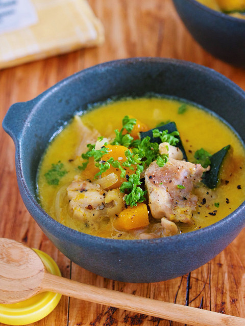 『チキンとかぼちゃのコクうま♡豆乳スープ』