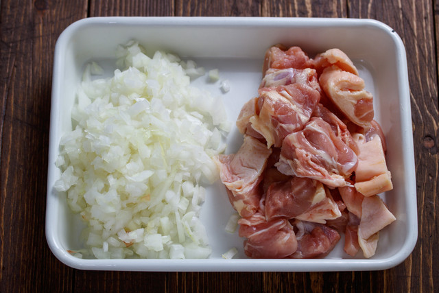 普通は、鶏肉と玉ねぎを