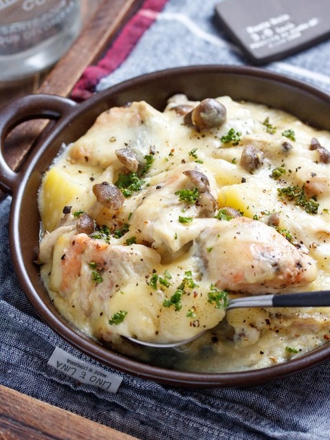 ワンパンde鮭とポテトの味噌チーズグラタン