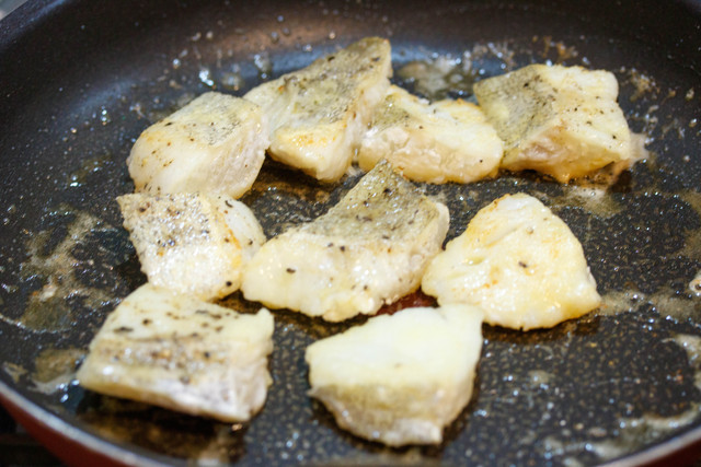 タラをムニエルの要領でフライパンで焼き