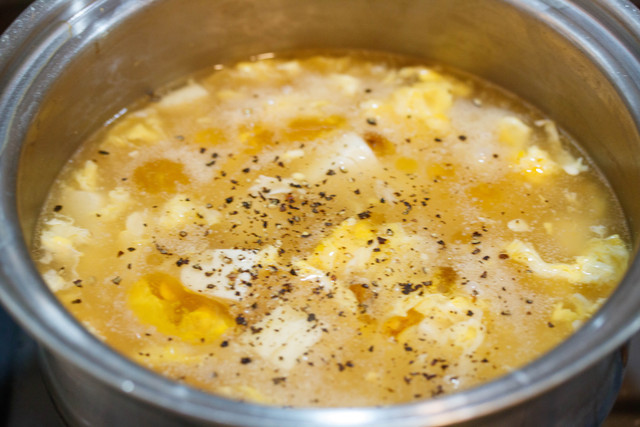片栗粉は最初からスープに溶け込ませるので