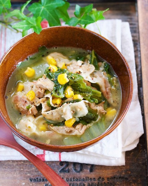 『豚バラ白菜の味噌バタコーンスープ』