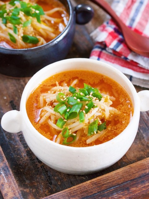 『もやしのうま辛♡スタミナ味噌スープ』
