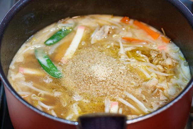 あとは、最後に豆乳(牛乳)とすりごまを加えるだけ。