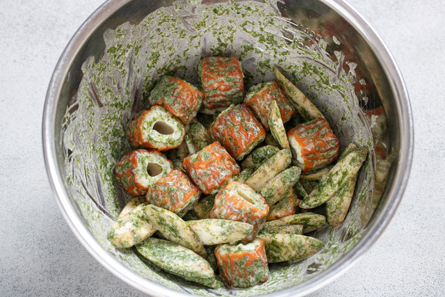 水・粉類・青のり・塩で作った衣を絡め