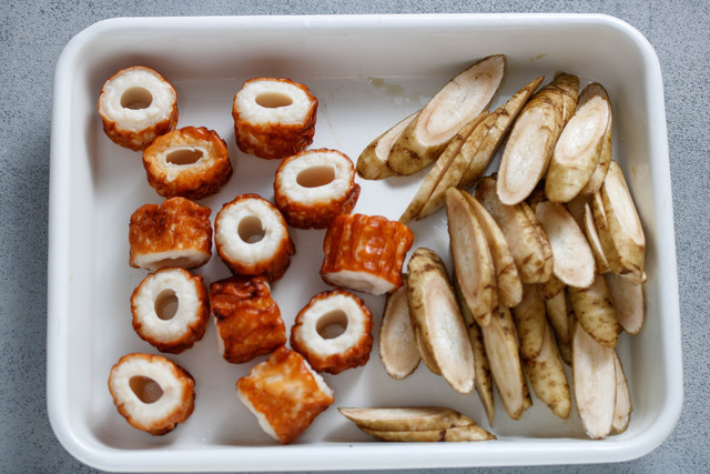 切ったちくわとごぼうに