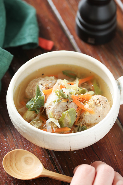 『鶏団子と白菜の生姜とろみスープ』