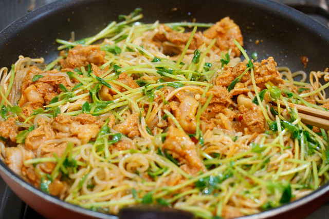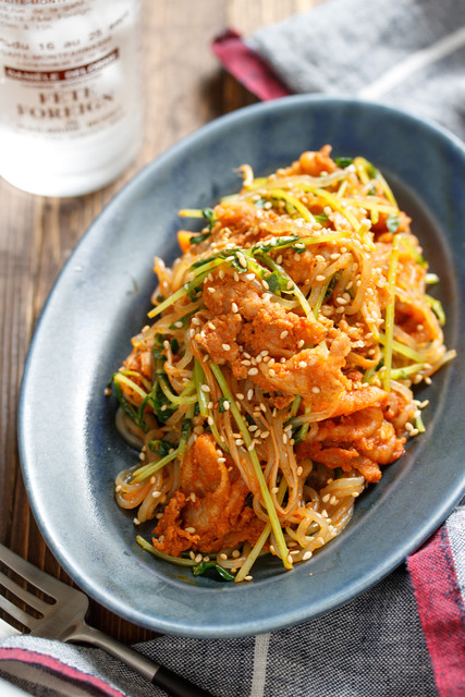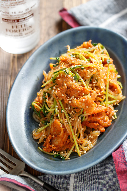 《豆苗と糸こんにゃくのヘルシープルコギ》