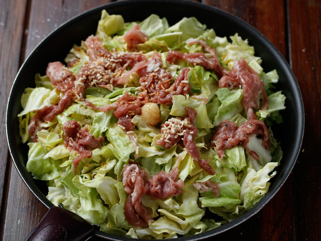 《豚こまキャベツの塩だれ蒸し》