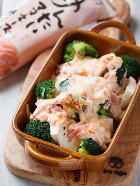 豆腐とブロッコリーのめんマヨチーズグラタン【#水切り不要】