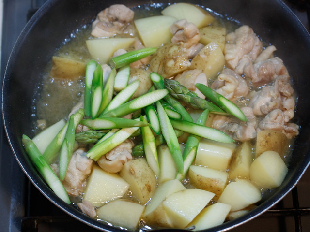 最後に、アスパラを加え
