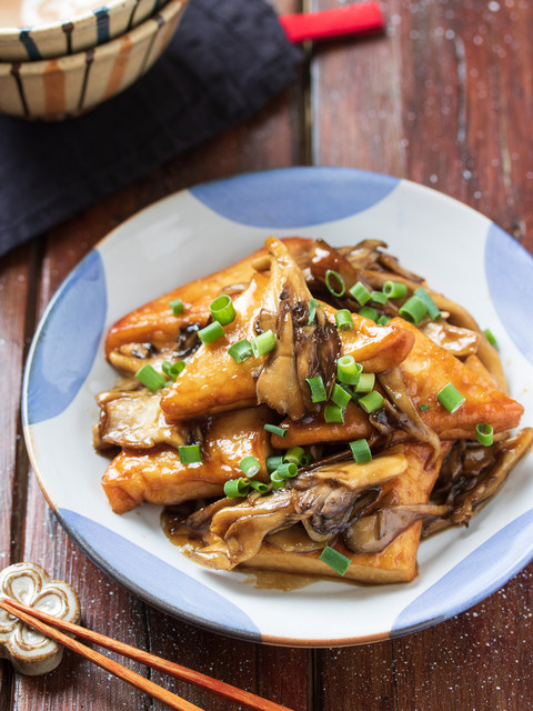 一正蒲鉾さんのお魚厚揚げと舞茸を使った、ご飯もお酒もすすむ一品!! 作り方は、超かんたん!!!フライパンで厚揚げと舞茸を炒め、あとはオール1の甘辛だれを絡めるだけ。 ポイントは、舞茸に片栗粉をまぶすこと♪こうすることで、きのこから水分が出すぎるのを防ぐ上、タレがよく絡んで満足感アップ♡ また、お魚厚揚げに旨味がたっぷりなので、だしの素や砂糖なども一切不要!! とにかくとっても簡単で、シンプルとは思えない出来なんで、機会がありましたら、ぜひ〜♡