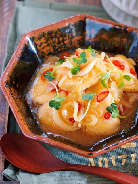 『むね肉と新玉ねぎのポン酢南蛮』