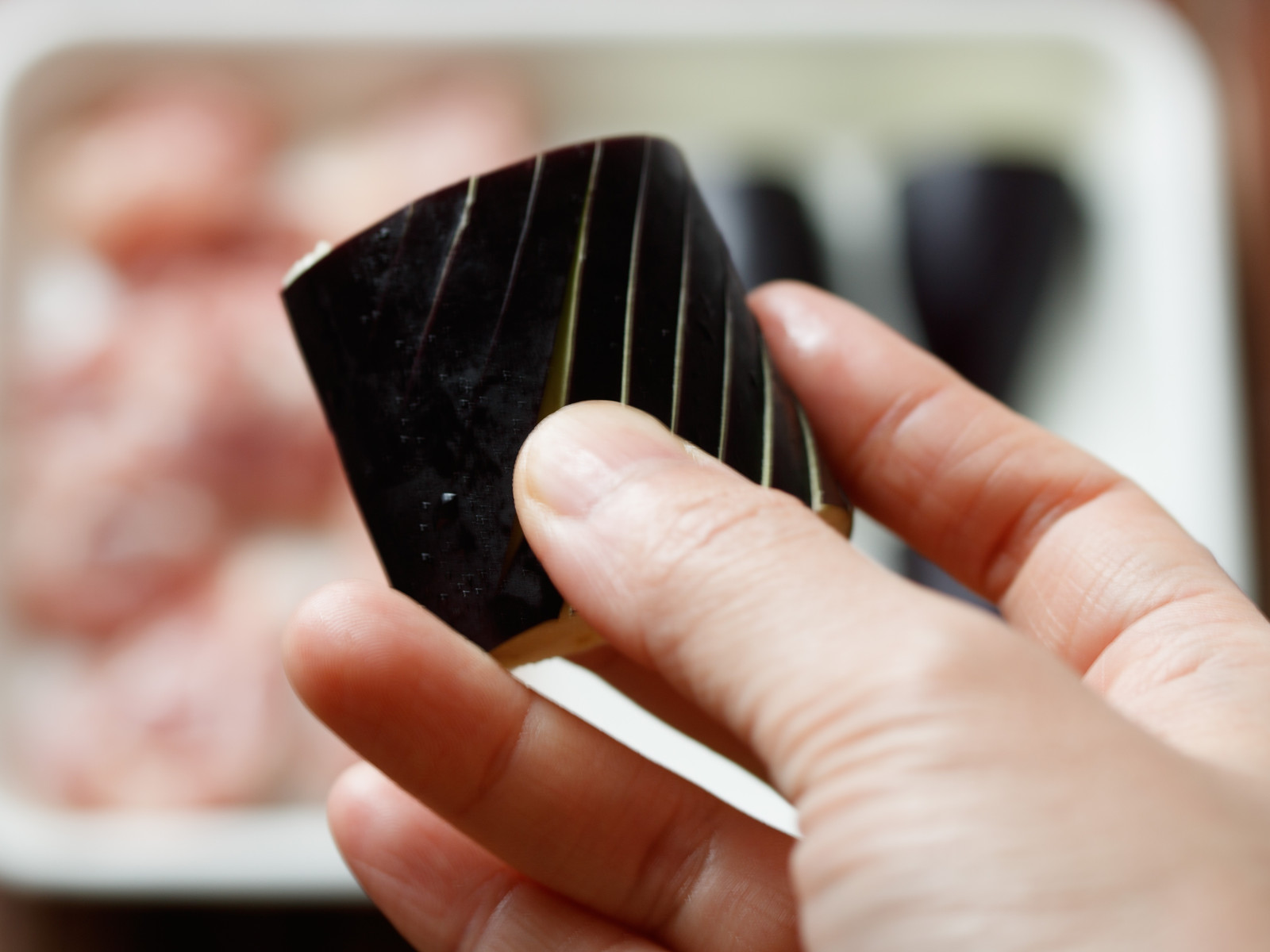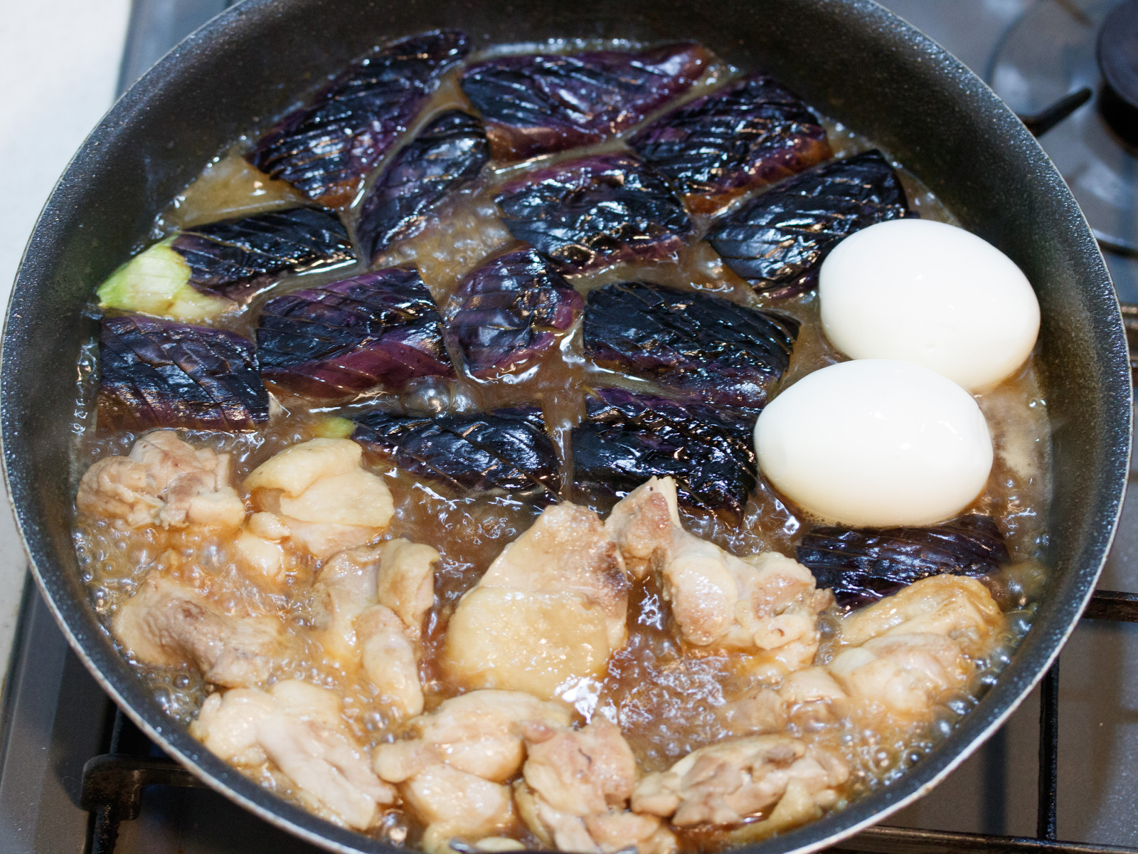 なすを煮ているとき、皮目を上にすると