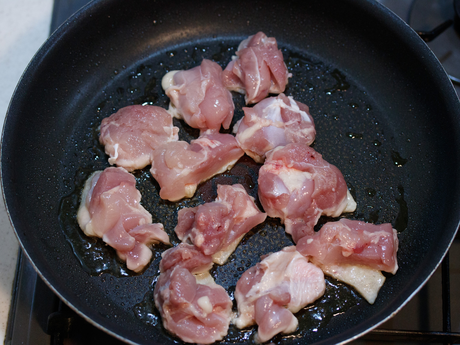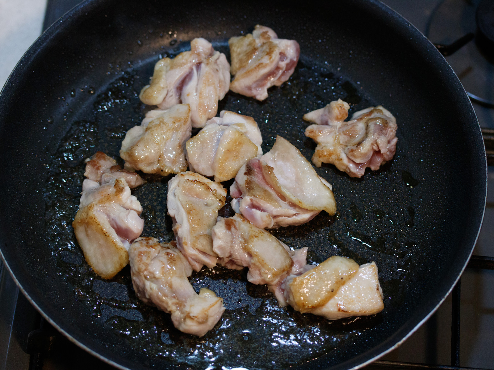 鶏肉を煮ている途中に戻すこと。
