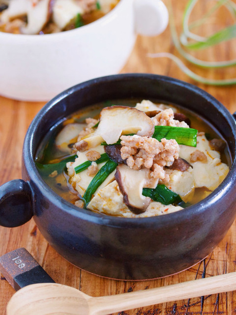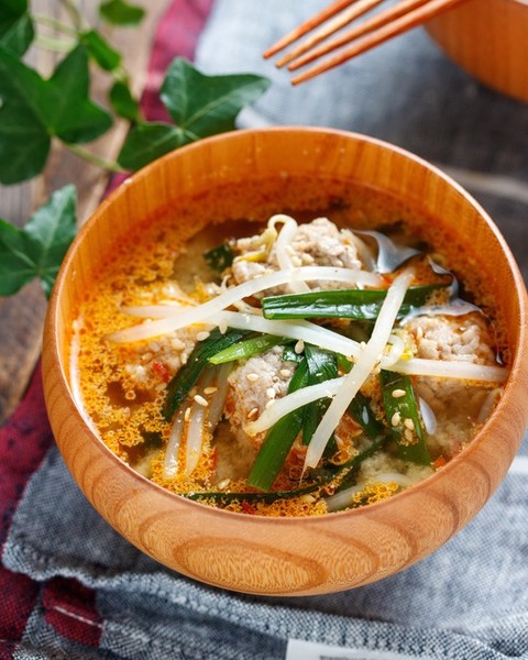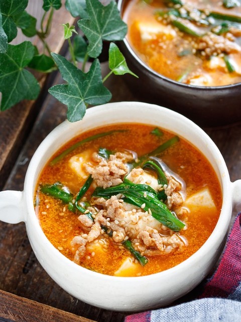 豆腐とひき肉のうま辛♡スタミナ味噌スープ