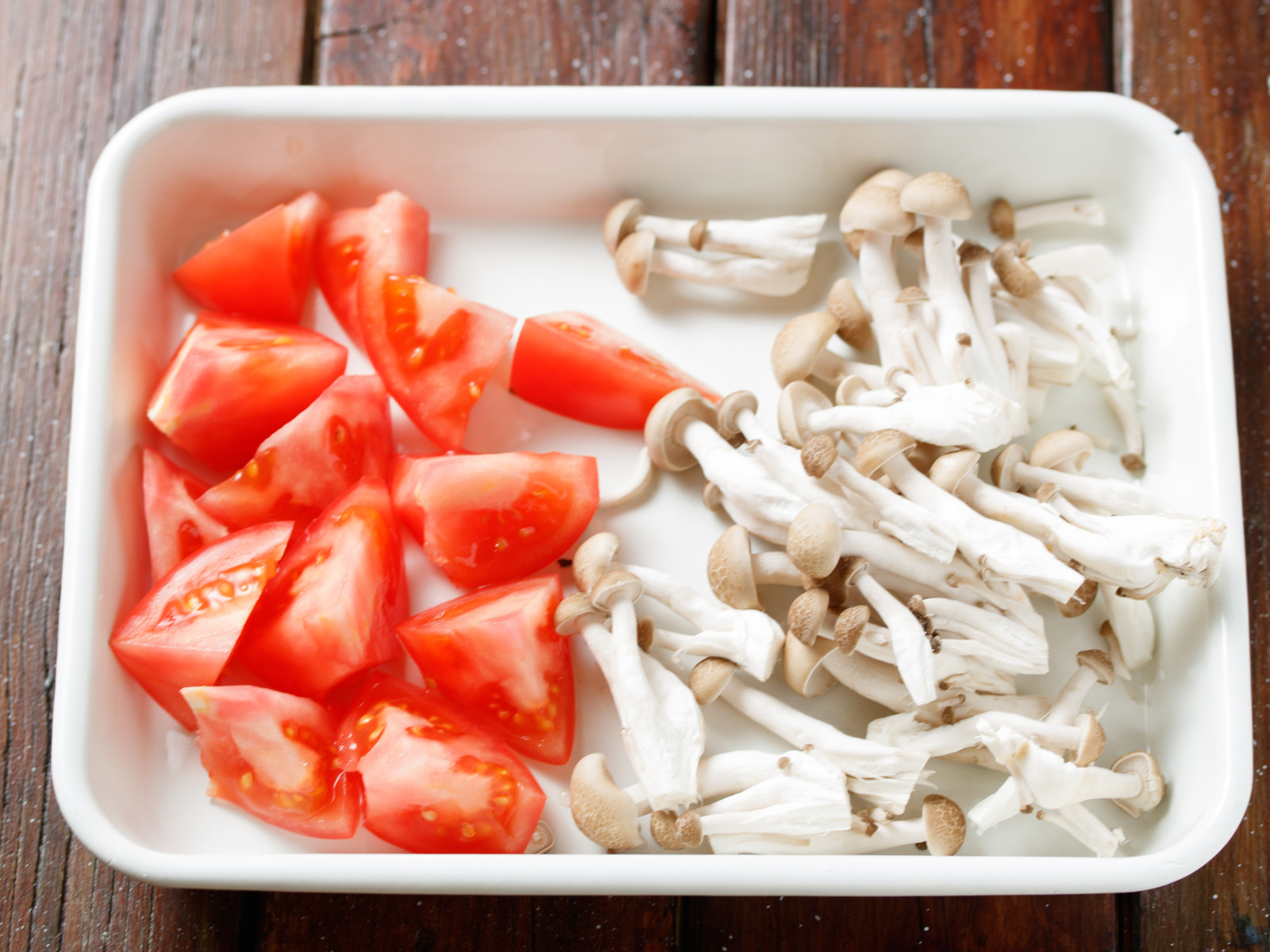 使う食材は、カニカマ・トマト・しめじ。