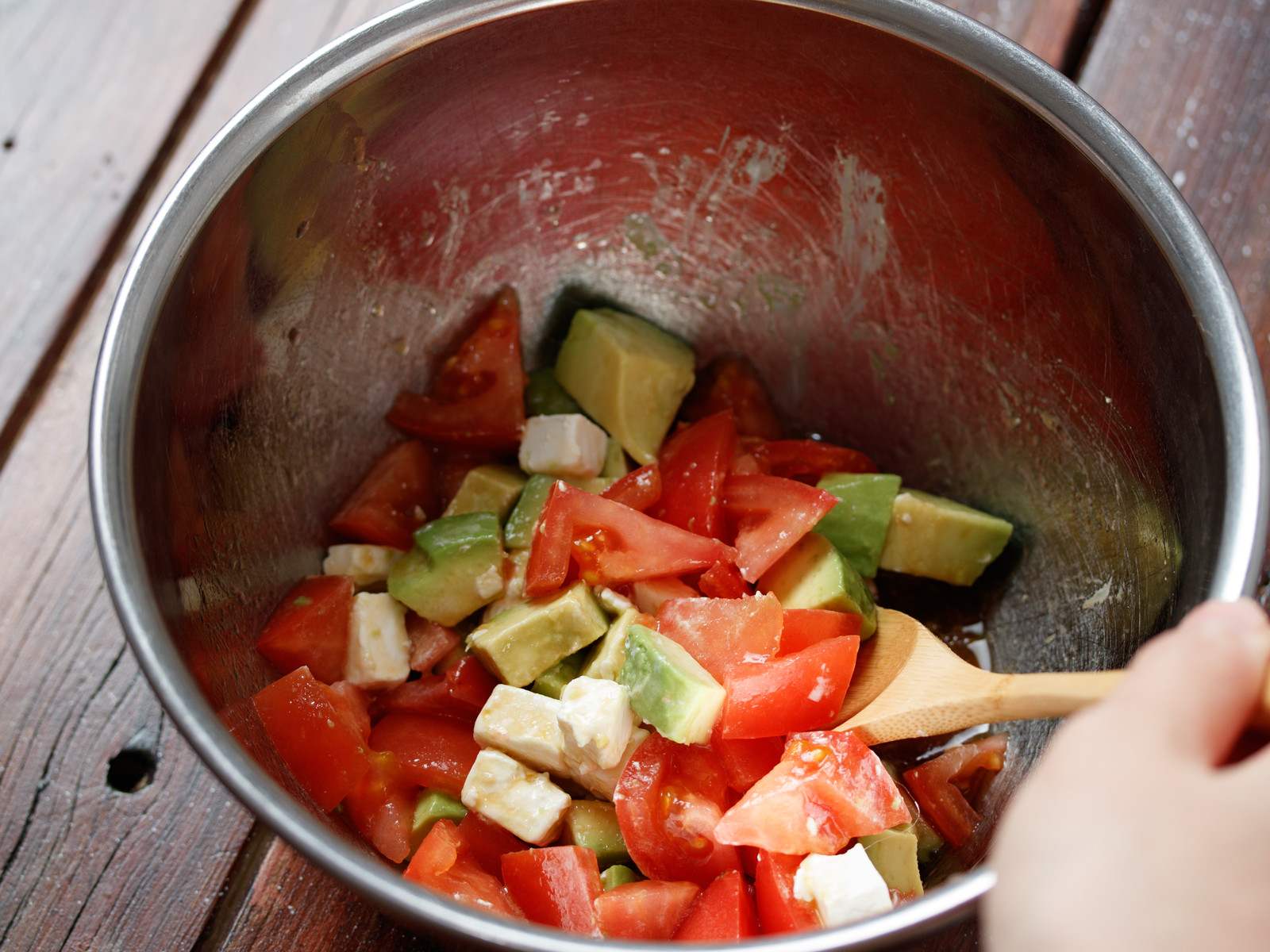 今回は、トマトとアボカドで和えたけど