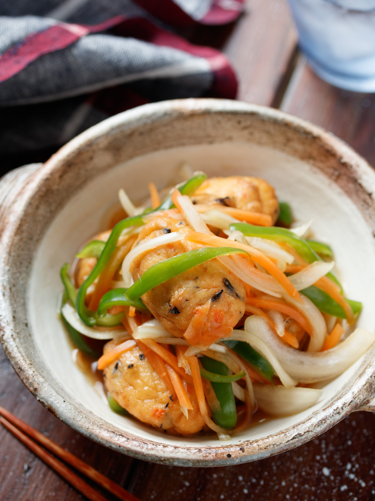 一正蒲鉾さんの白身魚揚げを使った、作り置きやお弁当に最適な一品! 作り方は、めちゃめちゃ簡単!!白身魚揚げをトースターで焼き、あとは、玉ねぎ・にんじん・ピーマンと共に南蛮だれに漬け込むだけ。 たったこれだけだけど、白身魚揚げの旨味がたっぷりでお野菜がモリモリいける!! また、白身魚のふわふわ食感にお野菜のシャキシャキ食感がアクセントになり、最後まで飽きずに食べられます♡ しかも、後味さっぱりなので、これから暑くなる季節にもぴったり!