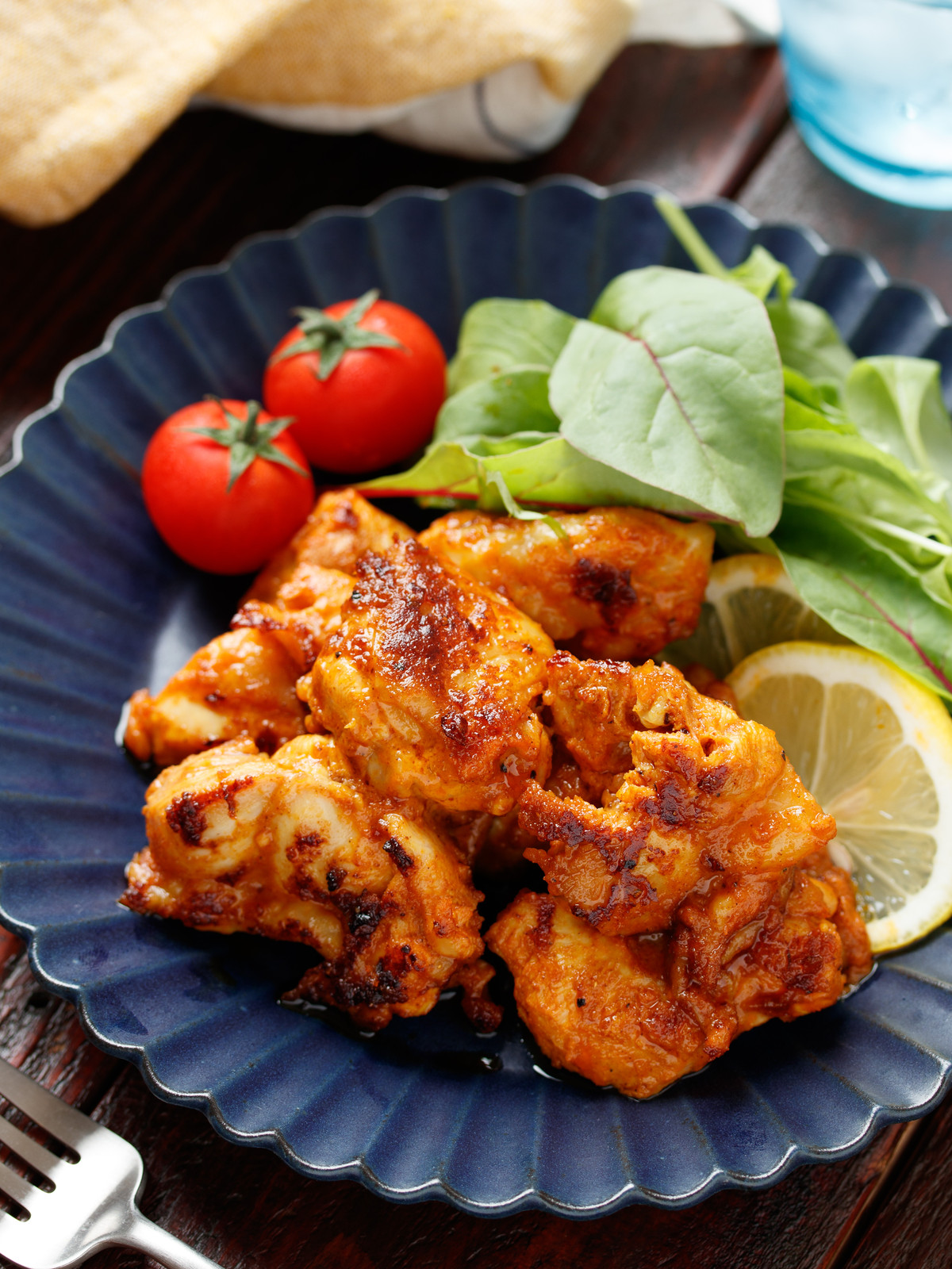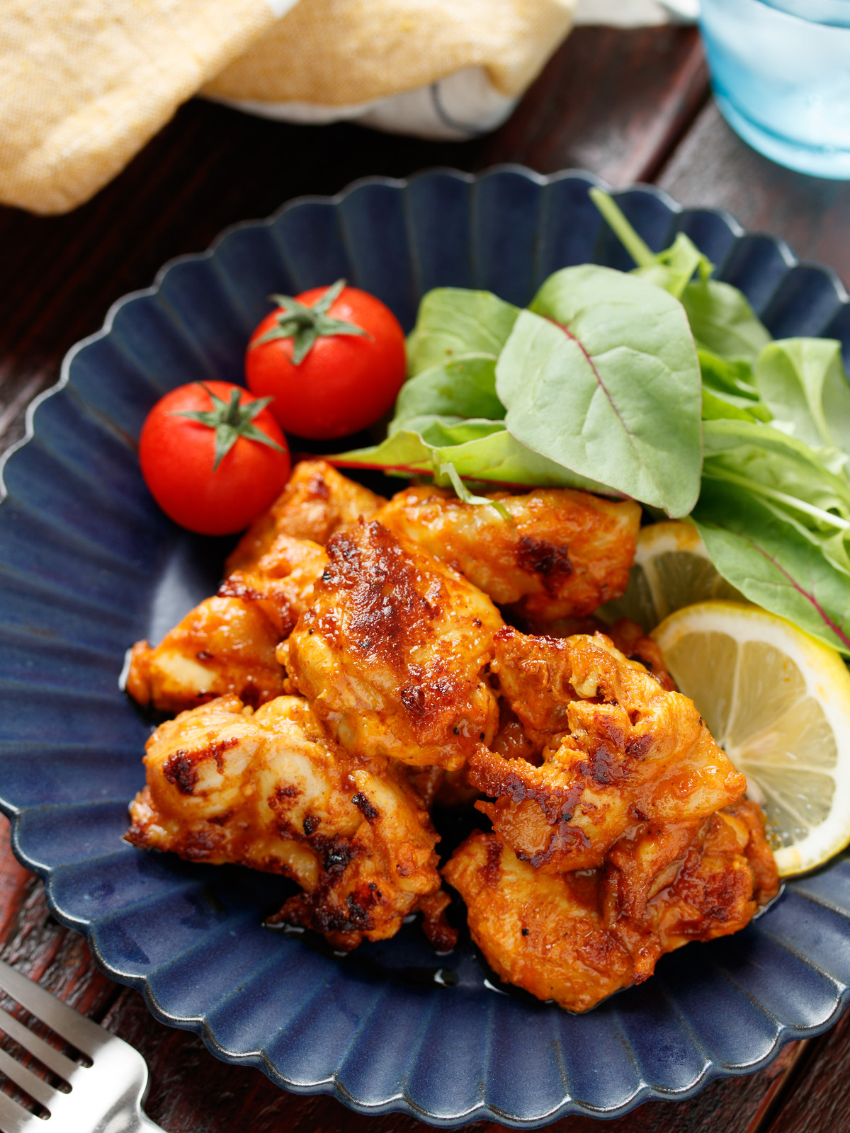 ヨーグルト不使用!子供が喜ぶ”タンドリーチキン”。 作り方はめちゃめちゃ簡単で、鶏肉に下味を揉み込んだら、あとはフライパンで焼くだけ♪これ下味冷凍も可能だし、焼くときはオイルすら不要なので超楽チン! しかも、マヨネーズのおかげでお肉が柔らかジューシー♡ マヨ+ケチャップのオーロラソース効果で、お子様も食べやすい一品です! こちら、もちろん鶏むね肉で作ってもOK!また、マヨネーズが苦手って方は、過去にヨーグルトバージョンの タンドリーチキンをご紹介しているので、そちらを参考にされてくださいね!