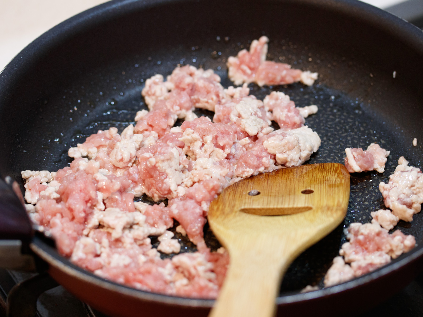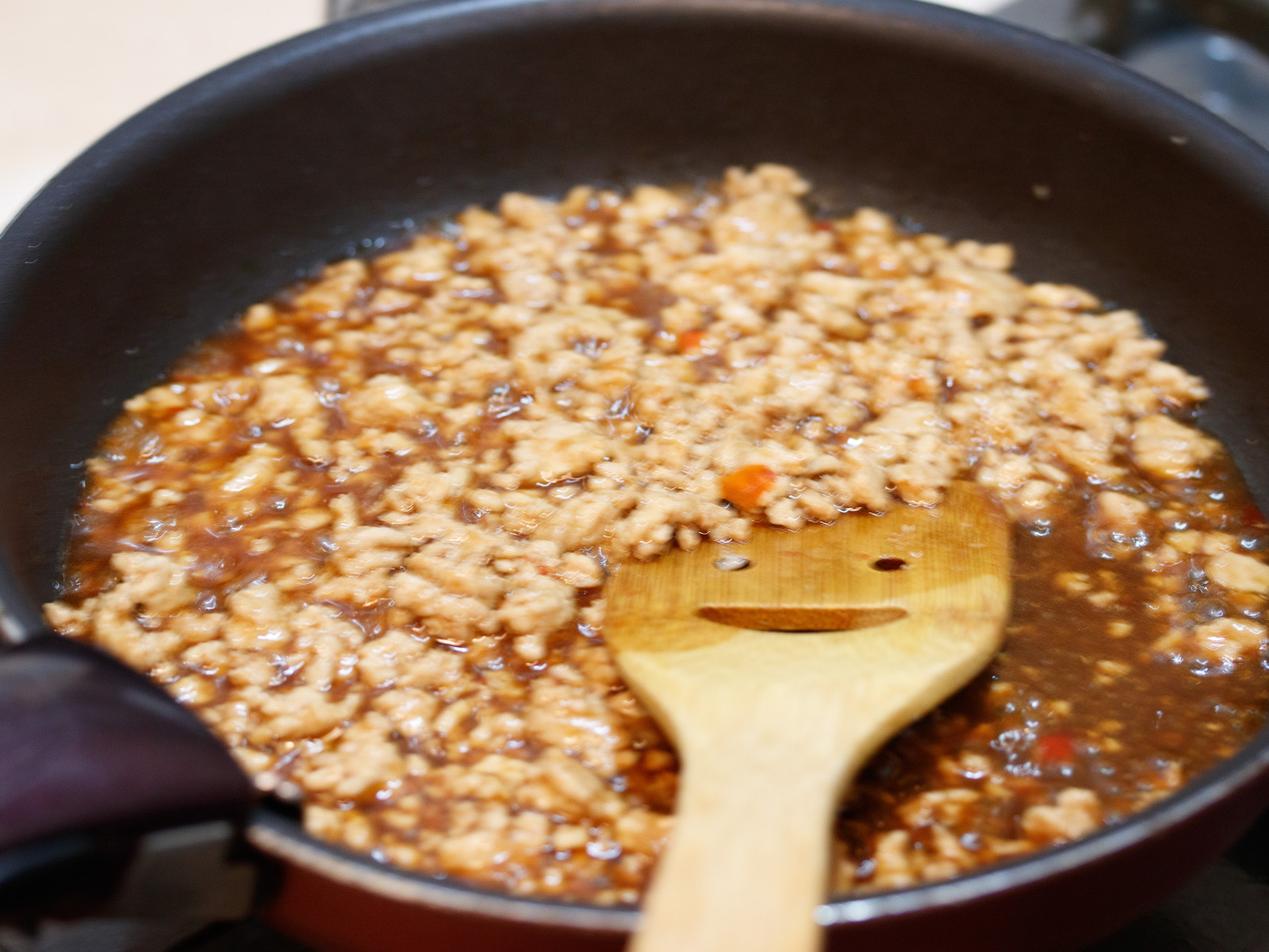 そうめんを茹でて、ひき肉を炒めるだけ。