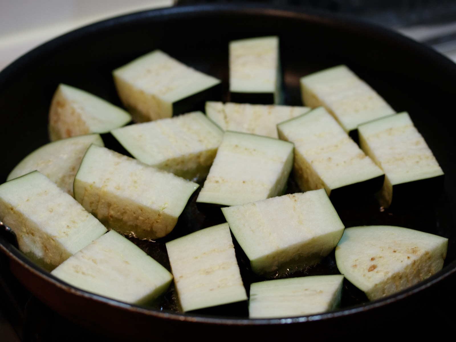 豚肉は、なすと一緒に