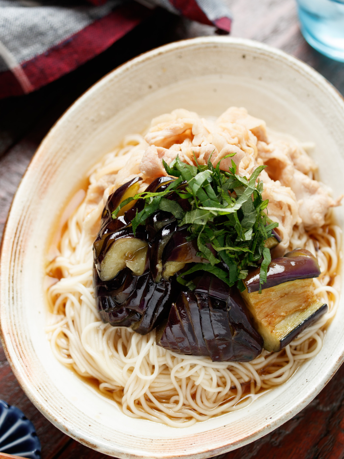《豚しゃぶと揚げなすのぶっかけそうめん》