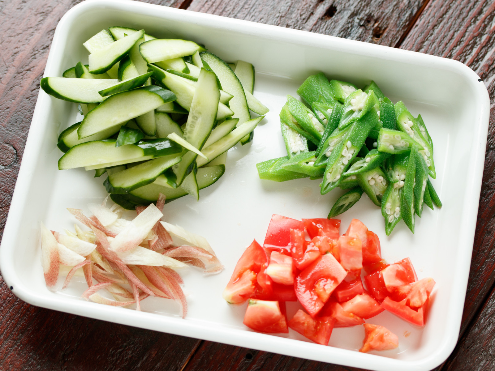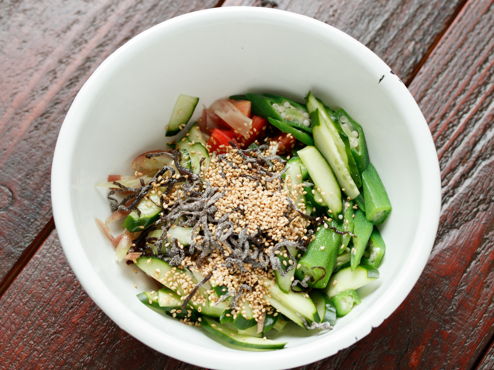 《トマトときゅうりとオクラの塩昆布サラダ》