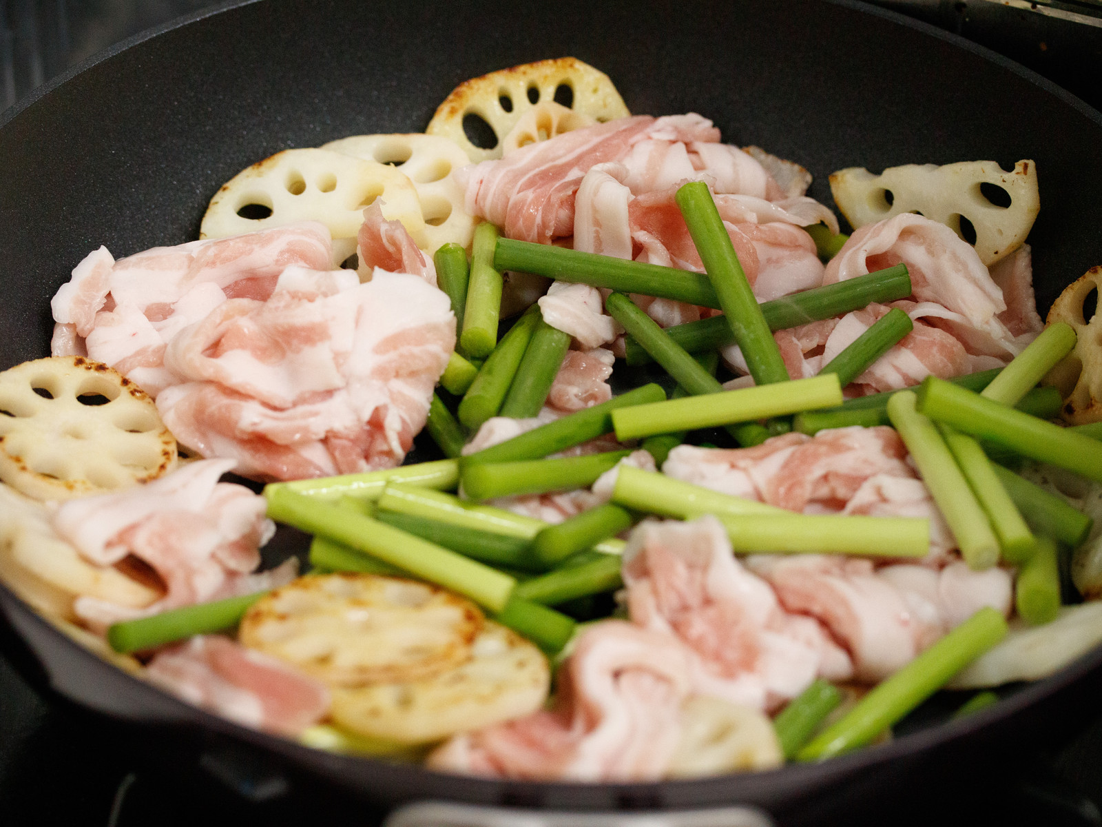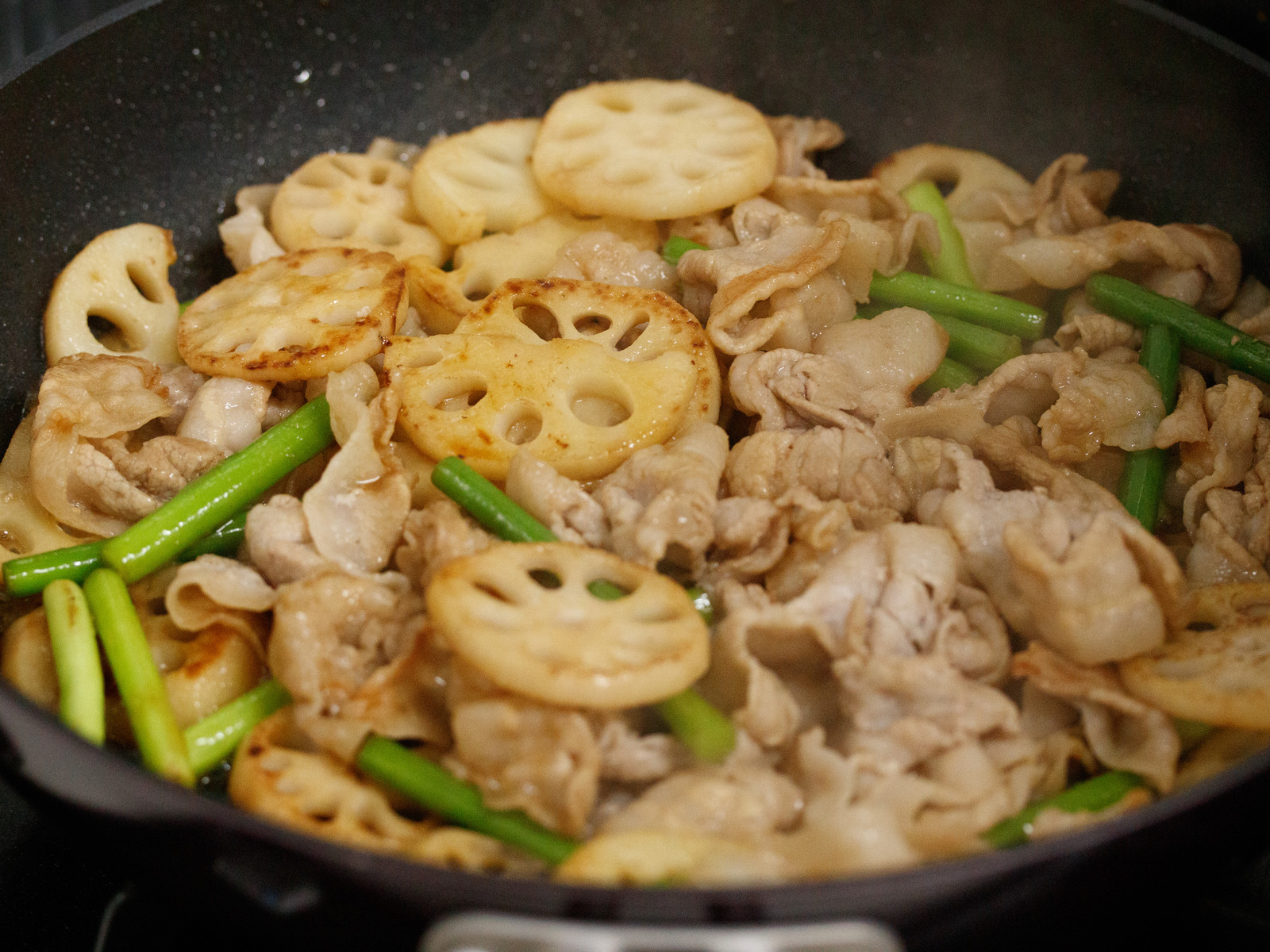 《豚肉とれんこんの甘辛ガーリック炒め》