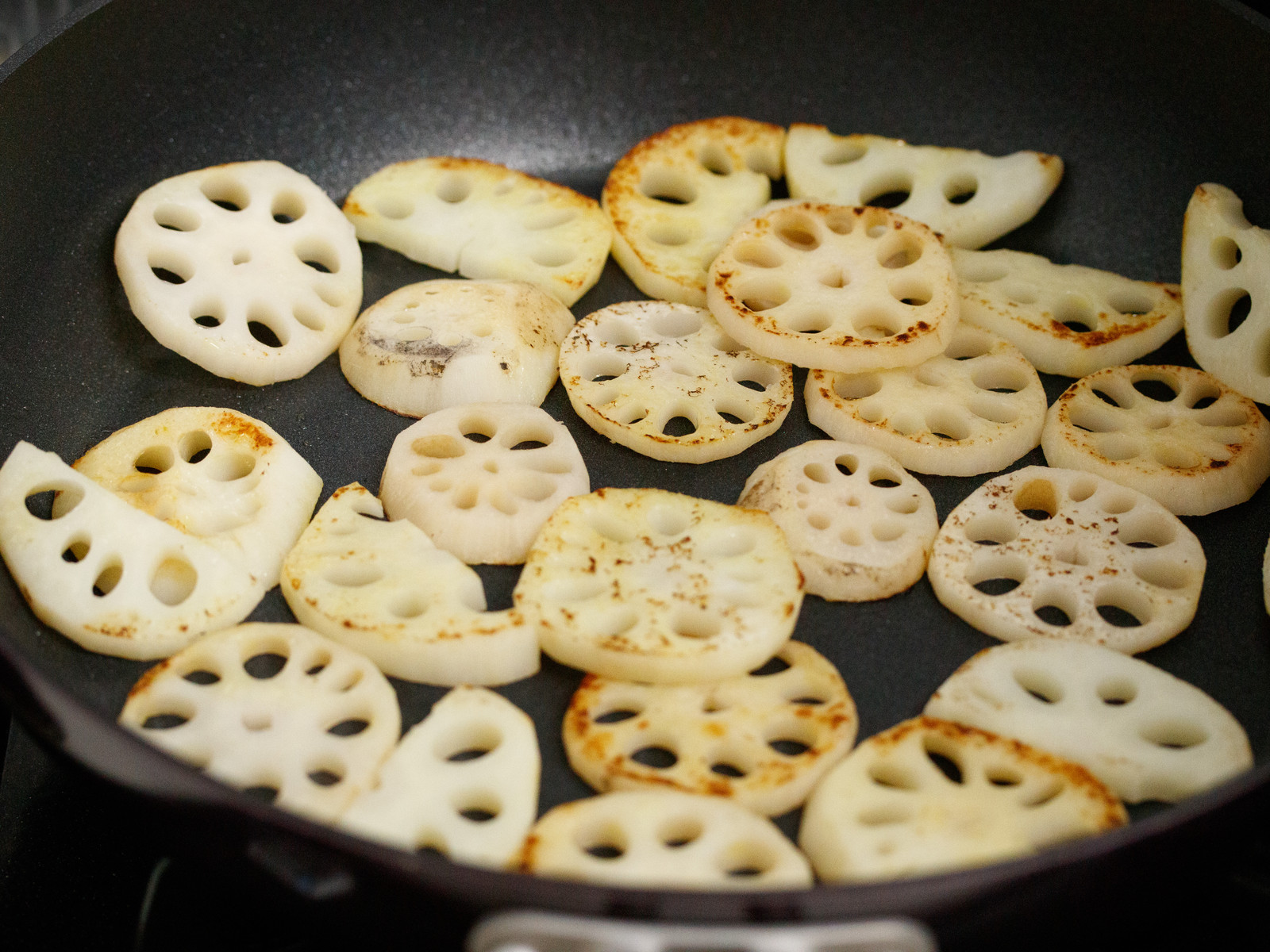 切って焼くだけの超簡単スピードレシピ!味付けは、ガーリックバター醤油。これに、にんにくの芽も入ってスタミナ満点!!ご飯もお酒もすすむ味付けです♪ ちなみに、にんにくの芽がなければ、インゲン豆・ピーマン・アスパラなどでも代用可能! れんこんも焼いた方が焼き色がついて香ばしくなるんですが、面倒なら、全部一緒に入れて炒めてもOK! とにかくめちゃめちゃ簡単で、れんこん好きさんにオススメの一品なんで、機会がありましたらぜひ〜♪