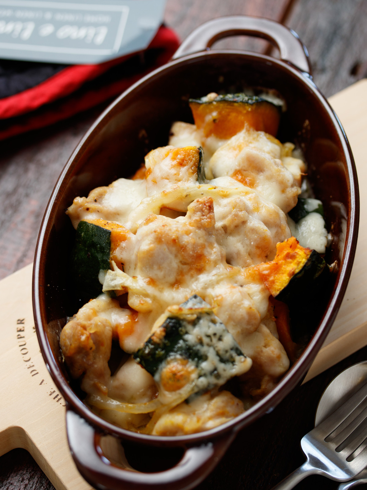 鶏肉の旨味とチーズが絡んだかぼちゃは